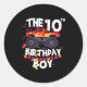 Monster Truck 10th Birthday Boy Funny 10 Years Old Classic Round Sticker
