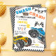 Monster truck bash cool modern kid 2nd birthday invitation
