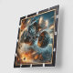 Monster Truck Leaping Amidst Explosions Square Wall Clock