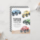 Celebrate your fast and furious three year old with this monster truck themed birthday invitation!