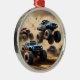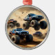 Pictured Are Monster Trucks Racing And Jumping Over Each Other
