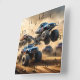 Pictured Are Monster Trucks Racing And Jumping Over Each Other