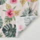 A vibrant watercolor pattern featuring lush Monstera leaves and pink hibiscus flowers, accented with golden tropical foliage. Perfect for bringing a touch of paradise to any space or product.