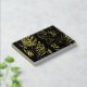 Gold Monstera leaves and foliage botanical personalised black and gold foil wedding guestbook.