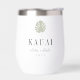 Impress your destination wedding guests with these island chic personalised wine tumbler wedding favours. Design features a light green monstera leaf illustration with your wedding destination beneath (shown with Kauai) in classic serif lettering. Add your names beneath in handwritten cursive script, as well as the year. Colours can be changed to match your wedding colours using Zazzle's design tool.