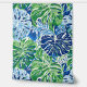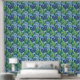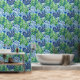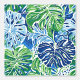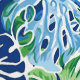 A seamless pattern featuring blue and green monstera leaves on a white background. The design has a hand-painted appearance, blending cool and natural tones to create a fresh and vibrant tropical effect.
