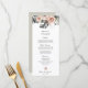 Modern tropical wedding dinner reception menu features tropical monstera palm leaves and flowers in shades of pink and peach. Sage green on back can be changed to any colour. All text, fonts, and colours can be changed. Coordinating items available to complete your wedding suite.