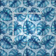 Monstera watercolor pattern blue fabric