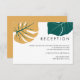 Designed to coordinate with our tropical Monstera wedding collection, this elegant botanical reception enclosure card features two monstera leaves in yellow and green, topping your desired message text.