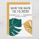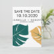 Designed to match our Monstera wedding invitations and accessories this tropical chic wedding save the date features a two trendy monstera leaves illustration in dark green and yellow.