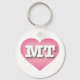 This key chain features a calm, cool, and collected pink heart with a white washed centre containing the bold, white, upper case letters MT, the official abbreviation for Montana, the treasure state.