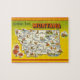 A vintage postcard map of the state of Montana repurposed on an 8 X 10 jigsaw puzzle.