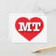 This postcard features a vibrant red heart containing the bold, white, upper case letters MT, the official abbreviation for Montana, the treasure state. The reverse side of the postcard is blank, awaiting your customised text or handwritten sentiments.