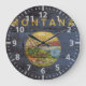 Montana State Flag on Old Wood Grain Large Clock