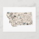 This retro style picture chart in the outline map shape of the Big Sky Country state of Montana has an antique and historic feel to it and will be a great surprise when the recipient reads your hand written note on the back side of this postcard.