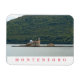 A beautiful view of the Our Lady of the Rocks church on an island in the Bay of Kotor in Montenegro printed on a souvenir fridge magnet.