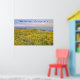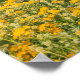 A vibrant field of yellow wildflowers stretches towards the horizon, creating a stunning contrast against the blue ocean and cloudy sky at Monterey Peninsula, California. The flowers are in full bloom, their bright yellow petals creating a sea of colour. The coastline is visible in the background, with rocky outcroppings and the gentle waves of the ocean.