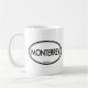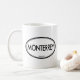 Welcome to Monterrey! Are you from Monterrey, Mexico? Do you have a friend or family member who loves Monterrey, Mexico? If so, this "Location Location" mug is what you're looking for! The design features "Monterrey" in big black lettering and "Mexico" in tiny black lettering surrounded by two ovals, one thin and one thick.