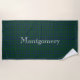 Stylish beach towel done in the classic blue and green Scottish clan Montgomery tartan plaid pattern. Personalise the large white text, in the middle, to suit your needs.