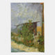 Montmartre Path with Sunflowers by Vincent van Gogh is a vintage fine art post impressionism architectural painting featuring a road lined with sunflowers, a picket fence and houses.