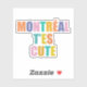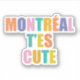 Montreal city cute typography modern colourful sticker. Modern colourful font script text and letters sticker with quote Montreal t'es cute. Gift idea for montrealers, montreal tourists, montreal visitors, friends, women, mothers, girls, adults, teens for birthdays, holidays, christmas, montreal incentives Beautiful modern sticker for souvenirs. Montreal trendy gift accessorie.