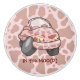 Cartoon car with pink cow pattern. Custom text.