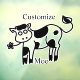 Black and white cow eating flower, to personalise by changing to your name on any background colour