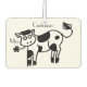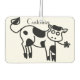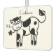 Black and white cow eating flower, to personalise by changing to your name on any background colour