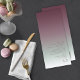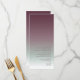 The background for the pieces in this minimalist wedding set is an eye-catching gradient of colours from dark burgundy through soft sage green to white. The wedding menu card shown here features a sleek, modern layout and contemporary sans serif font to add to it's appeal. Easily add your menu selections, initials and wedding date using the provided template. Search ID741 to see the complete set of matching products in burgundy mist or choose one of the other available gradient combinations to suit your wedding colour palette.