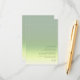 The background for all the pieces in this minimalist wedding set is an eye-catching gradient of colours from soft sage green through palest yellow to ivory. The wedding details card shown here features a sleek, modern layout and contemporary sans serif font to add to it's appeal. Easily add important information for your guests using the provided template. Search ID741 to see the complete set of matching products in Spring Meadow or choose one of the other available gradient combinations to suit your wedding colour palette.