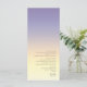 The background for the pieces in this minimalist wedding set is an eye-catching gradient of colors from indigo through peach and palest yellow. The wedding menu card shown here features a sleek, modern layout and contemporary sans serif font to add to it's appeal. Easily add your menu selections, initials and wedding date using the provided template. Search ID741 to see the complete set of matching products in Indigo Sunset or choose one of the other available gradient combinations to suit your wedding color palette.
