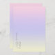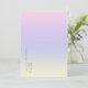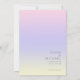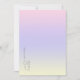 The background for all the pieces in this minimalist wedding set is an eye-catching gradient of pastel colors from soft pink through lavender, periwinkle and yellow. The wedding 'Save the Date' card shown here features a sleek, modern layout and contemporary sans serif font to add to it's understated elegance. Easily add your names and wedding date using the provided template. Search ID741 to see the complete set of matching products in Pastel Dawn or choose one of the other available gradient combinations to suit your wedding color palette.