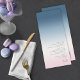 The background for the pieces in this minimalist wedding set is an eye-catching gradient of colours from prussian blue through soft pink and white. The wedding menu card shown here features a sleek, modern layout and contemporary sans serif font to add to it's appeal. Easily add your menu selections, initials and wedding date using the provided template. Search ID741 to see the complete set of matching products in Prussian Sky or choose one of the other available gradient combinations to suit your wedding colour palette.