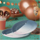 The background for all the pieces in this minimalist wedding set is an eye-catching gradient of colours from Prussian blue through soft pink and white. The wedding 'Love Is All Around' paper plate shown here features a sleek, modern layout and contemporary sans serif font to add to it's understated elegance. Easily add your names and wedding date using the provided template. Search ID741 to see the complete set of matching products in 'Prussian Sky' or choose one of the other available gradient combinations to suit your wedding colour palette.