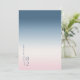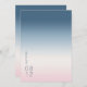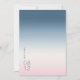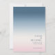 The background for all the pieces in this minimalist wedding set is an eye-catching gradient of colors from prussian blue through soft pink and white. The wedding 'Save the Date' card shown here features a sleek, modern layout and contemporary sans serif font to add to it's understated elegance. Easily add your names and wedding date using the provided template. Search ID741 to see the complete set of matching products in Prussian Sky or choose one of the other available gradient combinations to suit your wedding color palette.