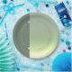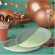The background for all the pieces in this minimalist wedding set is an eye-catching gradient of colours from soft sage green through palest yellow to ivory. The wedding 'Love Is All Around' paper plate shown here features a sleek, modern layout and contemporary sans serif font to add to it's understated elegance. Easily add your names and wedding date using the provided template. Search ID741 to see the complete set of matching products in Spring Meadow or choose one of the other available gradient combinations to suit your wedding colour palette.