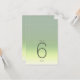 The background for all the pieces in this minimalist wedding set is an eye-catching gradient of colours from soft sage green through palest yellow to ivory. The wedding table numbers card shown here features a sleek, modern layout and contemporary sans serif font to add to it's appeal. Easily add table numbers, initials and wedding date using the provided template. Search ID741 to see the complete set of matching products in Spring Meadow or choose one of the other available gradient combinations to suit your wedding colour palette.
