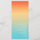 The background for the pieces in this minimalist wedding set is an eye-catching gradient of colours from tangerine orange through butter yellow to turquoise. The wedding menu card shown here features a sleek, modern layout and contemporary sans serif font to add to it's appeal. Easily add your menu selections, initials and wedding date using the provided template. Search ID741 to see the complete set of matching products in Tropical Sky or choose one of the other available gradient combinations to suit your wedding colour palette.