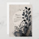 This Avant-Garde Foliage Style Wedding Invitation is a striking fusion of moody minimalism and organic design. Featuring bold botanical silhouettes layered over abstract watercolor textures in deep charcoal, sand, and muted neutrals, this invitation is perfect for couples seeking a nontraditional, art-inspired aesthetic. A large off-centre circular space provides a clean focal point for your personalised text, framed by expressive ink splashes and elegant foliage.