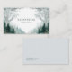 Step into a world of mist and magic with this beautifully illustrated enchanted forest business card. This design captures the serene and mystical atmosphere of a secluded woodland, featuring ancient, gnarled trees that stand like silent guardians on either side. A dense forest of evergreen pines fades into a soft, foggy background, creating a sense of depth and mystery. The moody, ethereal colour palette of muted teals, soft greys, and deep forest greens evokes a sense of calm and wonder. An intricate, hand-drawn border of delicate branches and leaves frames the top and bottom, adding a touch of rustic, whimsical elegance. The overall aesthetic is a perfect blend of fairytale enchantment and natural beauty, ideal for making a memorable impression.