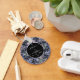 A bold and sophisticated Wedding keychain featuring dramatic dusty blue and grey floral illustrations against a stark black background. The crisp white typography and classic layout set an elegant, moody tone. Perfect for a formal evening or a sophisticated wedding.