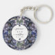 A bold and sophisticated Acrylic Keychain featuring dramatic dusty blue and grey floral illustrations against a stark black background. The crisp white typography and classic layout set an elegant, moody tone. Perfect for a formal evening or a sophisticated wedding.
