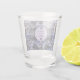 A bold and sophisticated Shot Glass featuring dramatic dusty blue and grey floral illustrations against a stark black background. The crisp white typography and classic layout set an elegant, moody tone. Perfect for a formal evening or a sophisticated wedding.