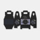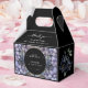 A bold and sophisticated Favor Boxes featuring dramatic dusty blue and grey floral illustrations against a stark black background. The crisp white typography and classic layout set an elegant, moody tone. Perfect for a formal evening or a sophisticated wedding.