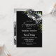 Invite your friends and loved ones to your engagement party with this moody black floral engagement party invitation that features an image of the happy couple on the reverse side.