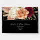 This moody black wedding envelope features bold florals in deep burgundy, blush, and ivory tones—perfect for romantic, gothic, or boho weddings. Elegant and customisable with your return address, it coordinates beautifully with burgundy and peach suites.