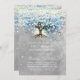 Moody Blue Grey Silver Heart Leaf Tree Wedding Invitation
