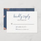 Modern moody navy blue watercolor wash with faux metallic copper leaf, wedding RSVP cards. Personalise text font style, colour, and size. Designed to match our Moody Blue Copper Wedding Collection.
