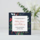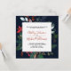 Moody Burgundy & Navy Blue Floral Frame Wedding Invitation in a trendy, unique square format. A luxurious festive Holiday Card design featuring exquisite modern luxury hand lettered calligraphy in red, and sumptuous watercolor arrangements of burgundy peonies, alabaster roses, holly and pine, accented with silver greenery, on a rich navy background. The back of the card features a neutral fine art watercolor paper texture, delicately decorated with silver watercolor foliage. A beautiful modern choice for fall and winter weddings, and the combination of burgundy and navy is this season's hottest colour combination.