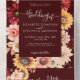 Moody Fall Burgundy Floral Dahlia Rustic OR Code All in One Invitation. Elegant rustic floral fall wedding invitation featuring hand painted watercolor flowers and fall leaveswith modern calligraphy script and dark burgundy background. Beautiful watercolor wildflowers autumn wedding all in one invitation with qr code RSVP.